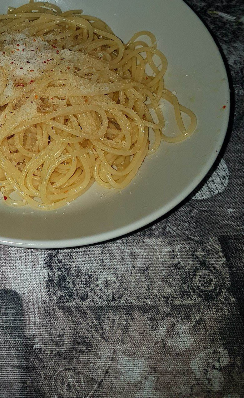 Sono della old school, gli spaghetti aglio, olio e peperoncino mi piacciono così senza particolari aggiunte anche se, devo confessarvi che come si vede dalla foto io metto sopra il parmigiano. E ora chiamatemi pure eretica!